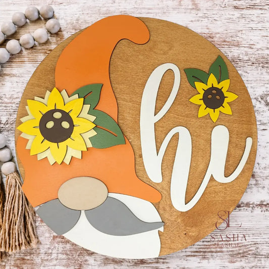 Hi Sunflower Gnome Sign