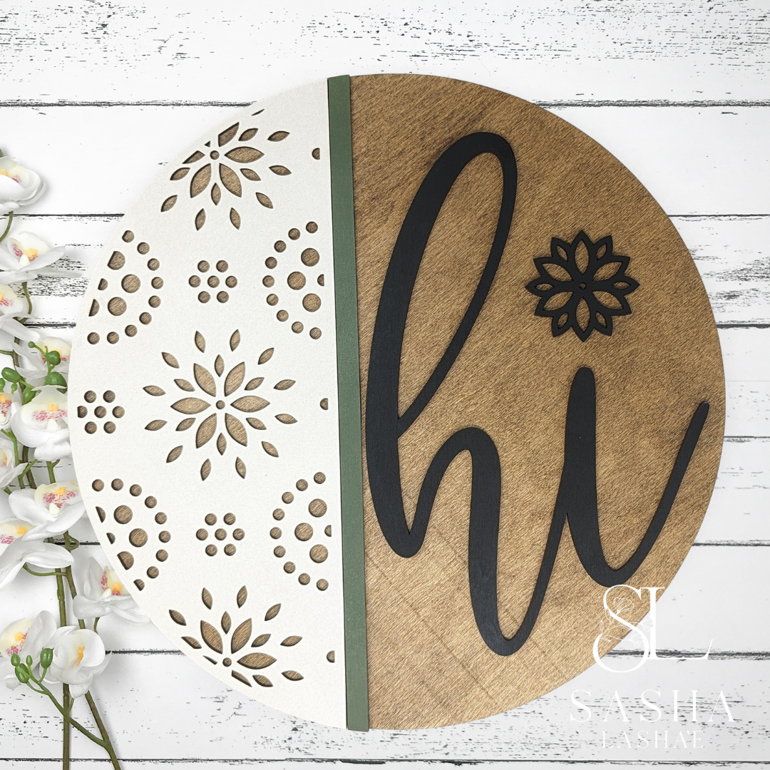 Welcome guests with a touch of elegance using our "Hi Floral" sign. Adorned with a beautiful floral design, this sign adds a touch of charm and warmth to your home decor. Crafted from high-quality materials, it's durable and designed to make a lasting impression. Whether hung on your front door or displayed indoors, it's sure to create a welcoming atmosphere and brighten up any space.