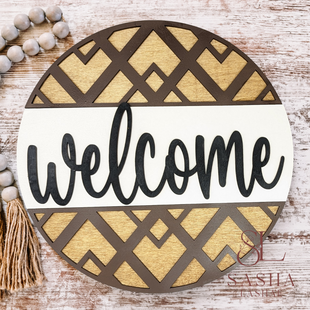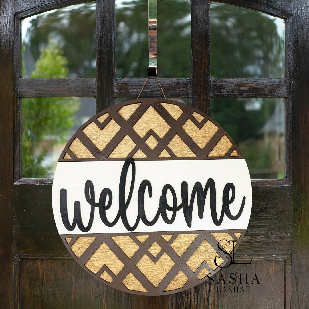 Elevate your entryway with our Geometric Welcome Sign. Featuring a stylish and modern geometric design, this sign adds a touch of sophistication to any space. Crafted from high-quality materials, it's durable and built to last. Whether hung on your front door to greet guests or displayed indoors as a chic accent piece, this welcome sign is sure to make a lasting impression with its contemporary flair.