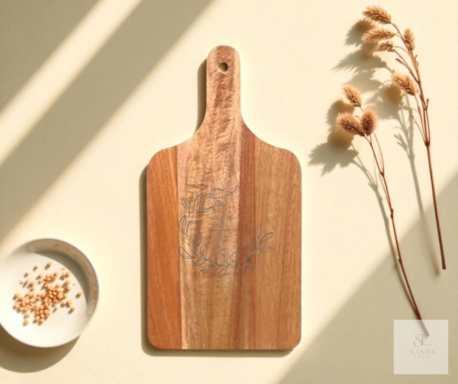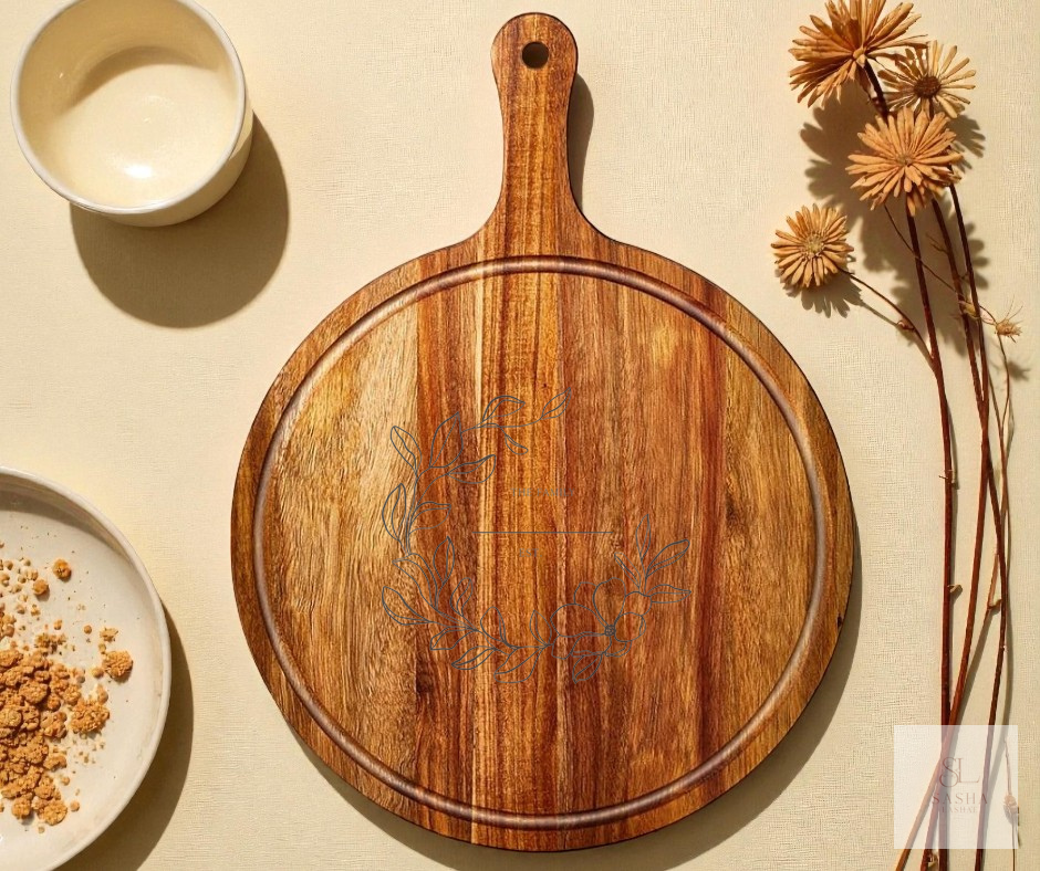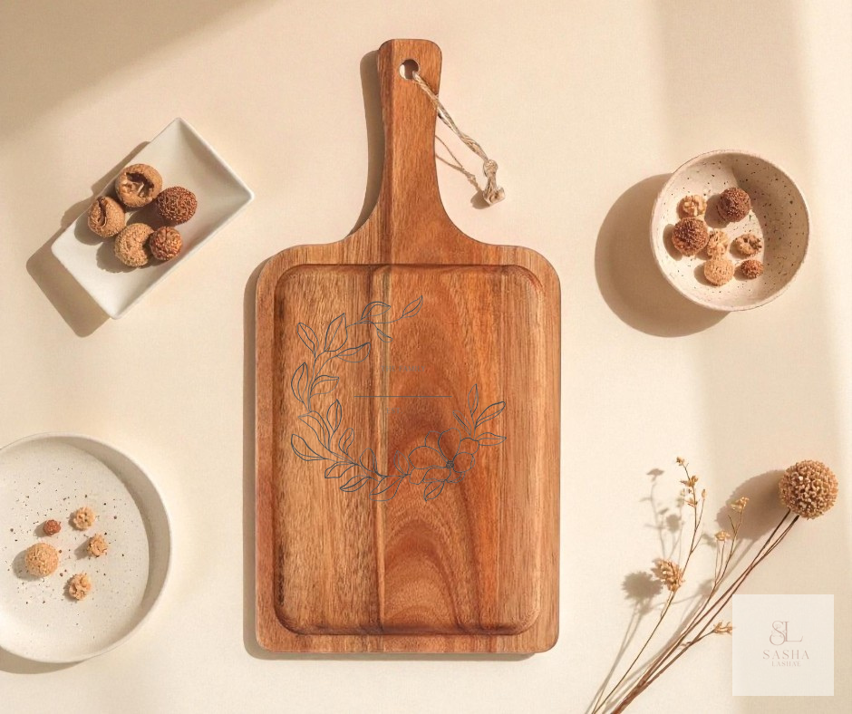 The Rosevale – Floral Frame Motif charcuterie board is crafted with precision and elegance, showcasing a beautiful floral frame design that enhances your presentation. Ideal for serving cheeses, meats, and appetizers, this board brings a touch of nature-inspired beauty to your gatherings. Made from high-quality materials, it is both functional and decorative, making it a wonderful addition to your kitchen or as a unique gift.