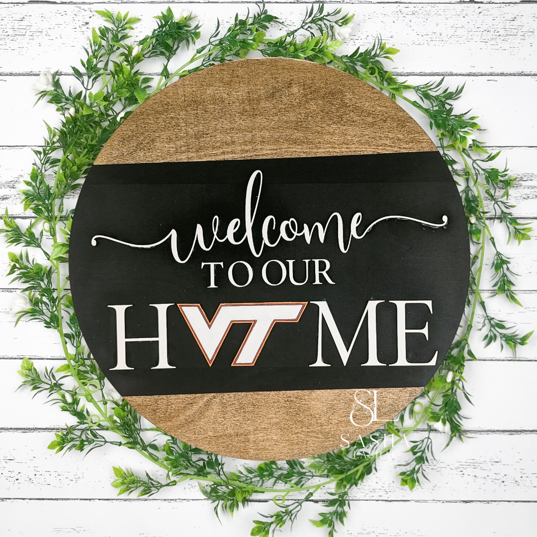 Welcome guests to your Virginia Tech-themed home with our "Welcome to Our Home VT" sign. Featuring the distinctive VT logo and school colors, this sign is a perfect blend of school pride and hospitality. Crafted from durable materials, it's suitable for both indoor and outdoor display, making it ideal for your front door, porch, or entryway. Whether you're hosting friends, fellow alumni, or fans, this sign sets a welcoming tone and showcases your Hokie spirit with style.