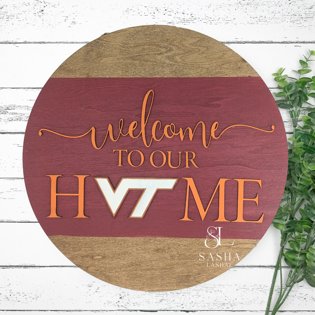 Welcome guests to your Virginia Tech-themed home with our "Welcome to Our Home VT" sign. Featuring the distinctive VT logo and school colors, this sign is a perfect blend of school pride and hospitality. Crafted from durable materials, it's suitable for both indoor and outdoor display, making it ideal for your front door, porch, or entryway. Whether you're hosting friends, fellow alumni, or fans, this sign sets a welcoming tone and showcases your Hokie spirit with style.